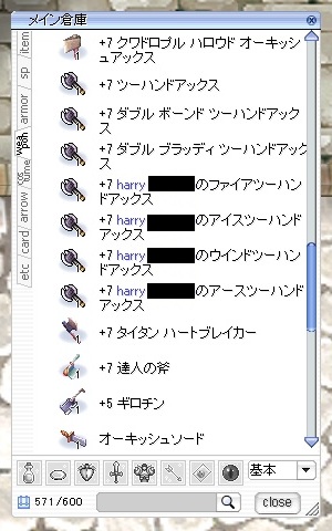 | +7 ガーディアンオブアビス[1] | 300 M ~ 1G | 極限の魔力エンチャ可 究極精錬期間で下落 |